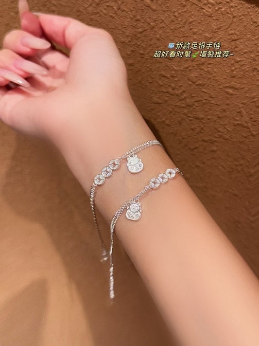 NA- 13. Money Coin Little Cat Siver 999 Bracelets with S999 Mark & Certification//NA 13. Gelang Koin Uang Kucing Kecil Perak 999 dengan Tanda & Sertifikasi S999