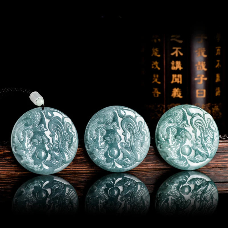 NA- Dragon & Phoneix Necklace Pendant Jadeite Jade Guatemala Type A//Dragon & Phoneix Necklace Pendant Jadeite Jade Guatemala Type A