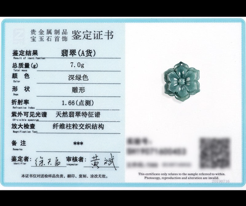 Certification from 3rd party authority to verity as Grade A Natural Jade.