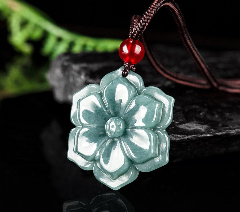 NA- Sunfower Jadeite Jade Blue Water From Guatemala Pendant Necklace//Kalung Liontin Air Biru Giok Giok Bunga Matahari dari Guatemala